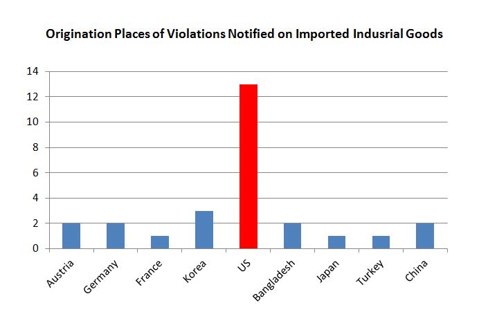 General Administration of Quality Supervision, Inspection and Quarantine of the People's Republic of China (AQSIQ) validated notifications on 27 batches of imported industrial goods, which were found non-compliant during inspection and quarantine process at the entry ports of China. They have not been offered for sale on the China market yet and are re-dispatched or destroyed instead according to laws.