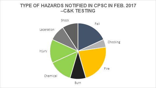 Based on our statistics, the products notified through the CPSC in February were as below:
