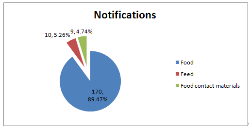 The major hazards for the notifications on FCMs are migration and excessive heavy metal. Among the notifications, there are 9 of Chinese FCMs products, accounting for 90%, such as knives, plastic bowls, melamine cups, melamine tureen, manual grinder, ice bag, plastic cutlery, latex gloves and metal vessels. Accompanying measures are also taken to recall or withdraw products.