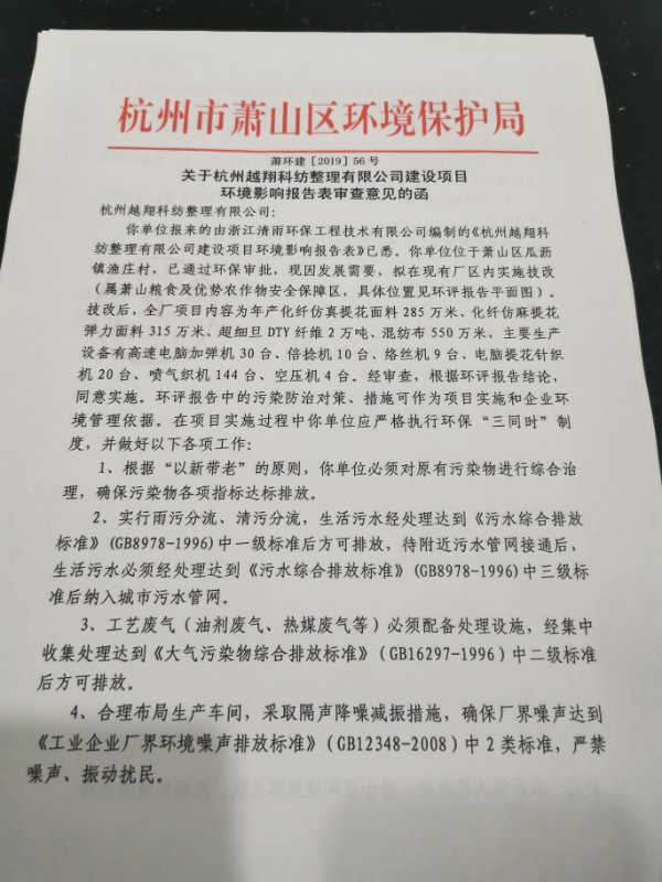 项目名称:杭州萧山鸿盛纺织有限公司改扩建项目