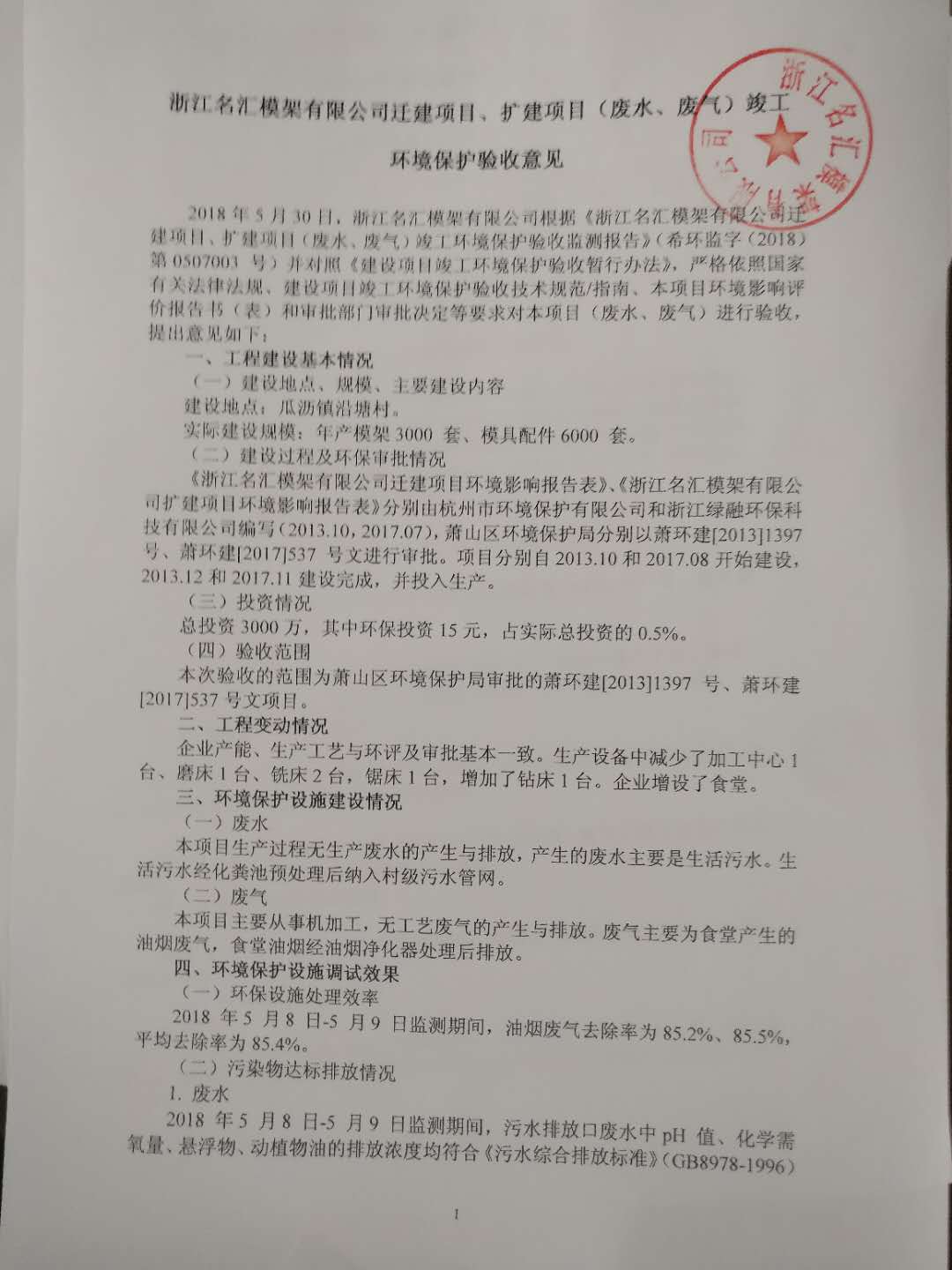 浙江名汇模架有限公司扩建项目竣工验收意见2