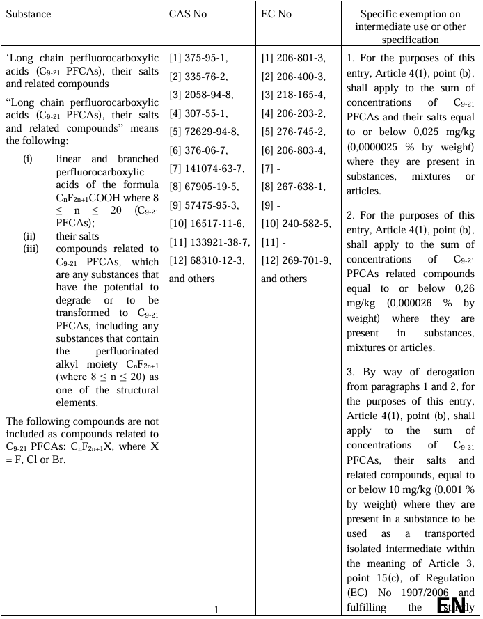 3. Long chain perfluorocarboxylic acids (C9-21 PFCAs), their salts and related compounds