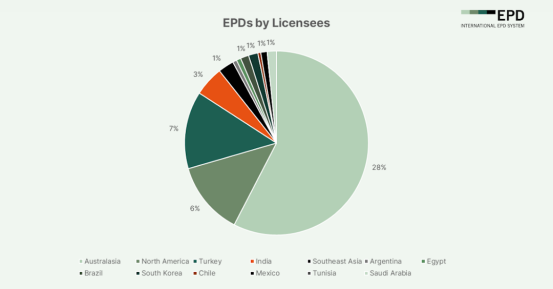 In 2025, the global Environmental Product Declaration (EPD) experienced explosive growth! On December 23, the International EPD System (IES) released statistics showing that the number of effective registrations exceeded 18,000, with 9,395 new additions throughout the year. More and more companies are using EPDs to demonstrate their products' environmental credentials. Among participants, EPD Australasia contributed nearly 30% of the EPDs, indicating a high level of adoption in the region. North America and Europe followed closely, maintaining high usage rates. Additionally, EPD India and EPD Southeast Asia submitted 1.7% and 1.3% of the declarations, respectively, reflecting the increasing participation of emerging economies.