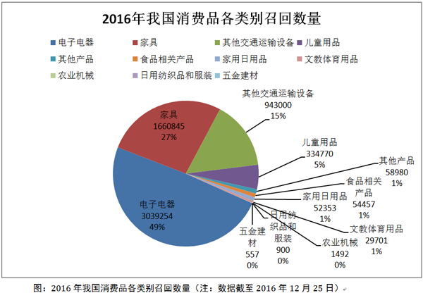 2016年12月26日质检总局召开2016年缺陷产品召回专题新闻发布会,今年1月1日开始实施《缺陷消费品召回管理办法》(以下简称《管理办法》),截至12月25日,我国共实施消费品召回230次,涉及数量617.63万件,其中将近一半为电子电器。