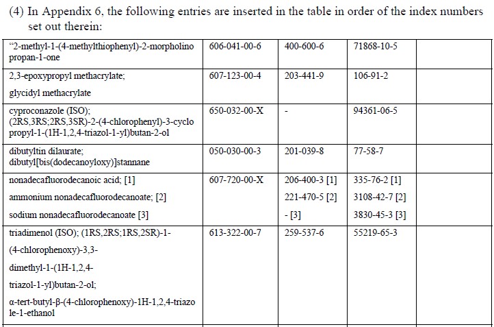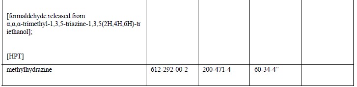此次添加的物质中,硝酸镉,氢氧化镉和碳酸镉这三种均为欧洲化学品管理局在2017年10月20日商定的新的高关注物质(SVHC)。基于对人类和动物的研究分析结果,这18种物质被分为CMR 1A和CMR 1B类。销售或供给民众的此类CMR物质及其混合物禁止超过规定浓度。此修订条例将从2018年12月1日开始实行,其中甲醛类从2018年2月开始实行。