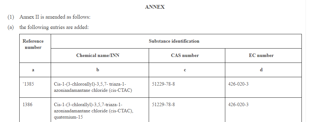 23 May 2019, the Official Journal of European Union released the directive (EU) 2019/831, amending the Annex II, III and V to Regulation (EC) No 1223/2009 on cosmetic products. The directive shall enter into force on 11 June 2019. This Regulation shall be binding in its entirety and directly applicable in all Member States.
