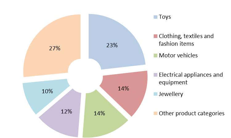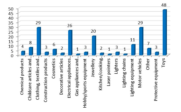 The five most frequently notified product categories accounted for 73% of all notifications: