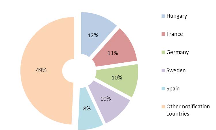 The five most frequently notifying countries accounted for 51% of the notifications: