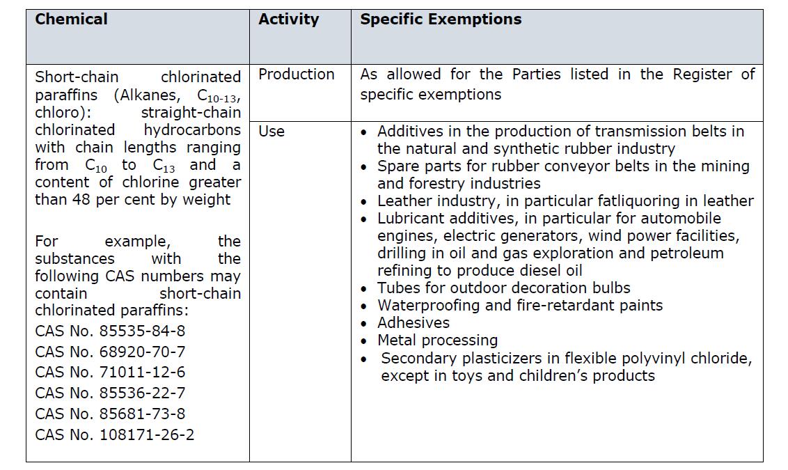 The specific exceptions, which are also laid out in the convention, apply if SCCPs are used in: