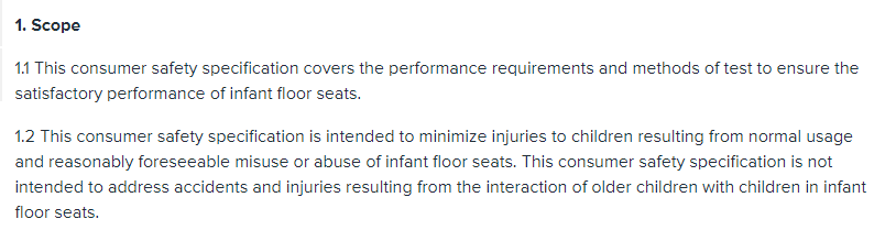 11 June 2018, ASTM International’s committee on consumer products approved a new safety standard ASTM F3317-18 that provides requirements and test methods aimed at ensuring adequate performance of infant floor seats. This standard is intended to minimize injuries to children resulting from normal usage and foreseeable misuse or abuse of infant floor seats.